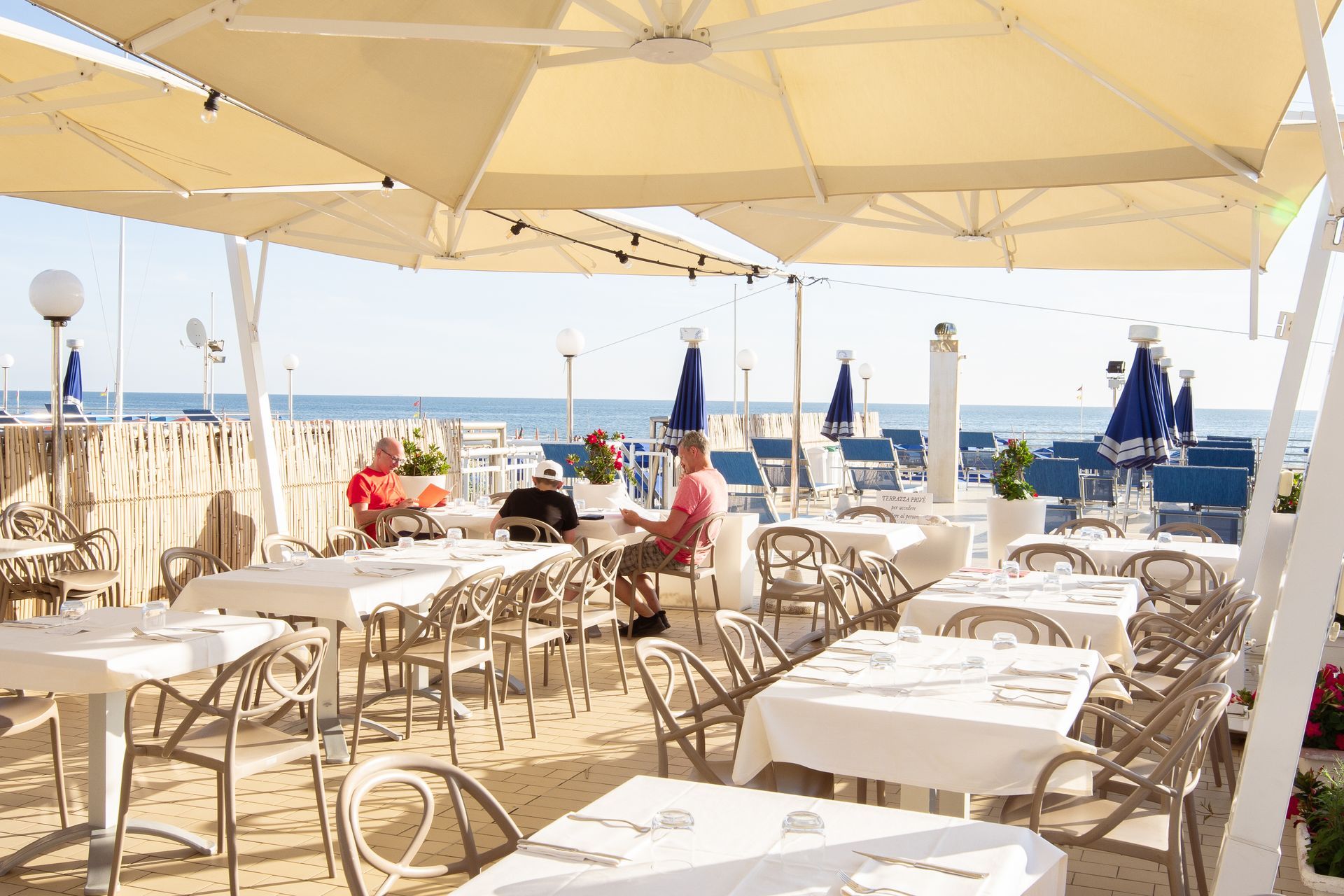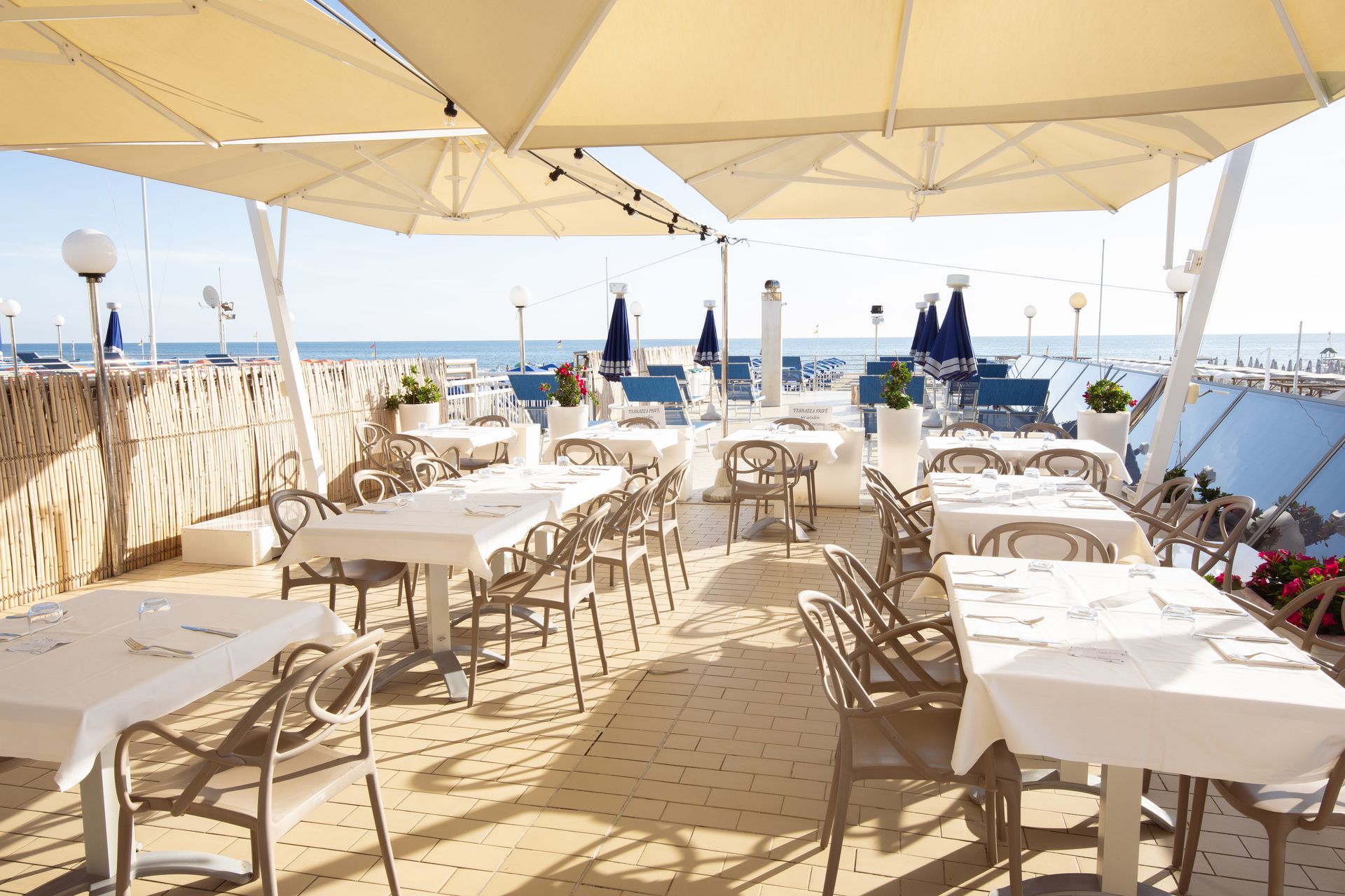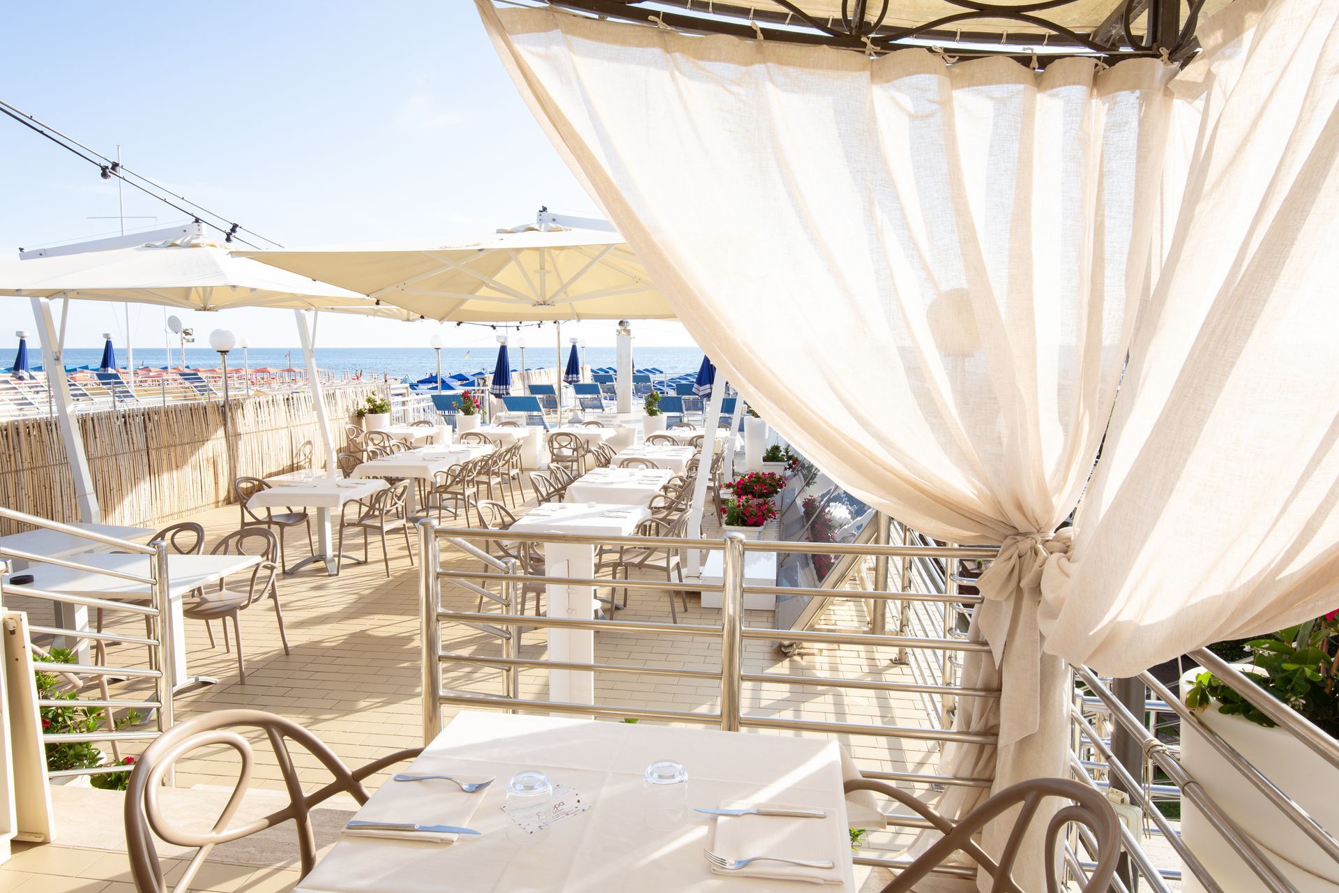Elegante e accogliente, il Ristorante Europa, già dall'ingresso, offre ai propri ospiti un ambiente familiare e raffinato curato nei minimi dettagli grazie anche alla sua preziosa terrazza. Il ristorante dispone di una splendida veranda vista mare, dove sarà possibile degustare le miglior prelibatezze della cucina versiliese, coccolati dal dolce suono del mare, offrendo angoli intimi in un’atmosfera di straordinaria di calma e tranquillità.