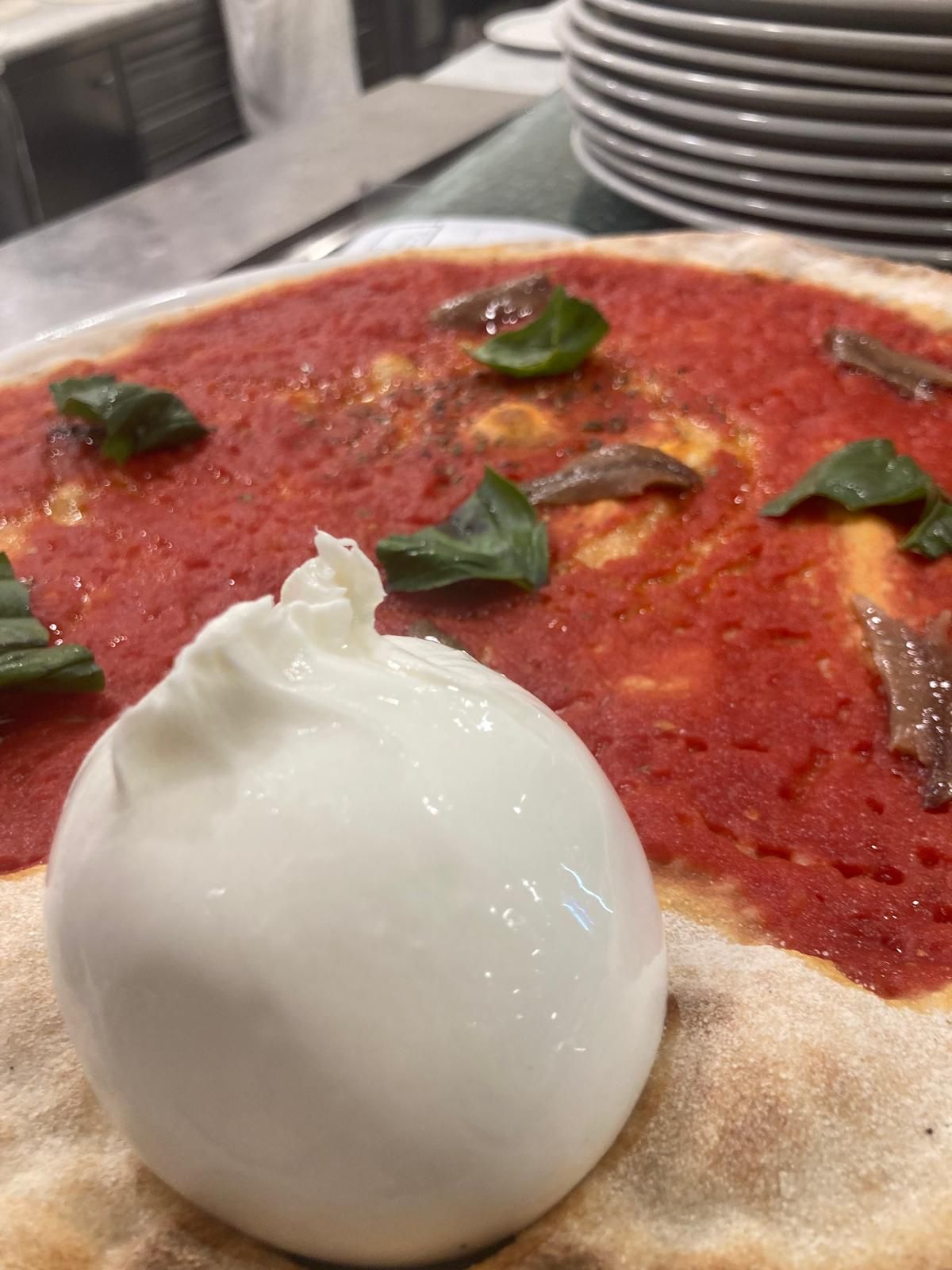 Ci impegniamo per darvi, anche sulla pizza, solo il meglio. Per l'impasto usiamo farina macinata a pietra di un molino locale (Molino Angeli di Pietrasanta) solo ed esclusivamente lievito madre, acqua e sale. Per le farciture non scendiamo a compromessi: solo pomodori pelati 100% toscani, fiordilatte italiano e ingredienti selezionati. Gli impasti vengono preparati al mattino presto e lasciati lievitare il tempo necessario per essere pronti la sera: il risultato che ne deriva è una pasta di pizza morbida ed elastica, pronta alla cottura alle alte temperature del forno.